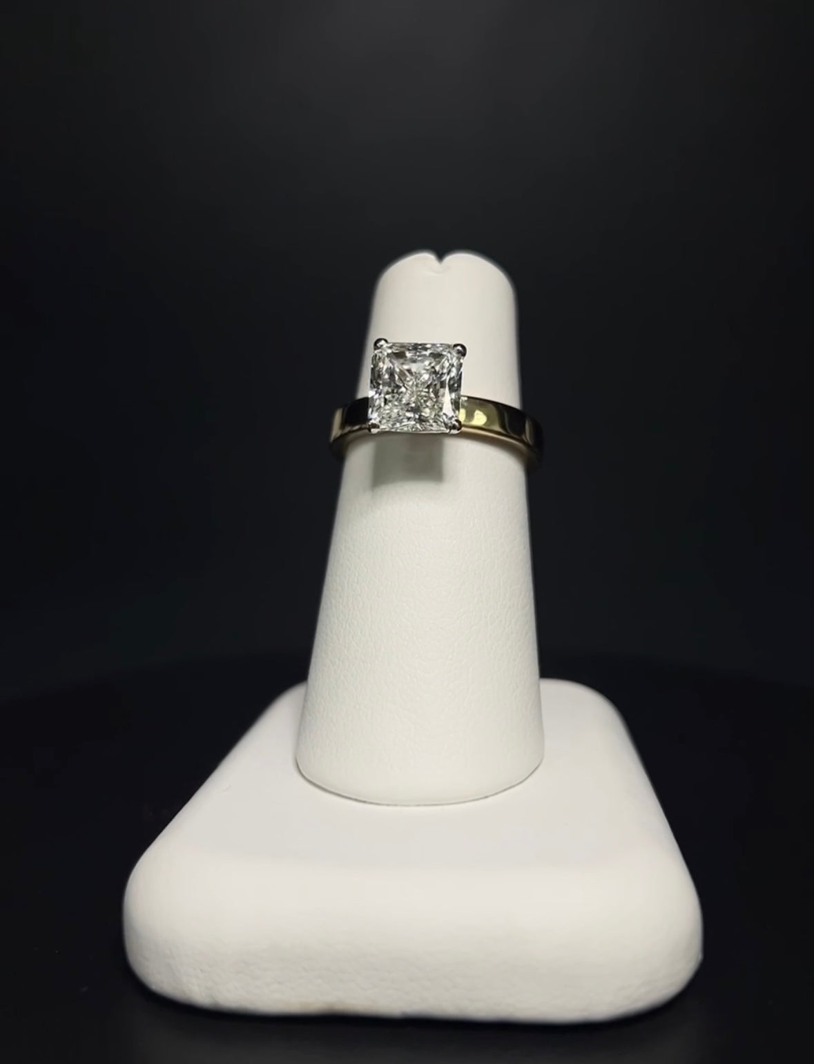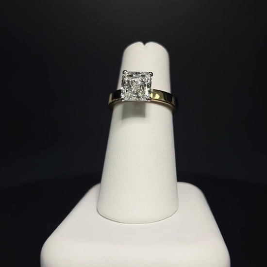 9K yellow and white Gold set with a lab-grown 2.5ct square radiant cut centre diamond in our cigar setting.